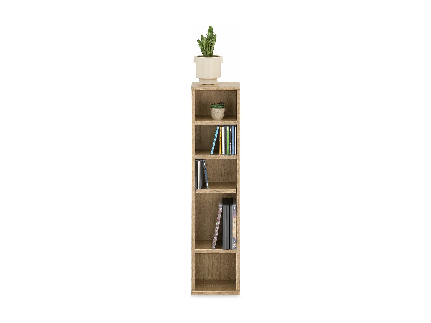 Le meuble CD/DVD "Vostan" de VCM est en imitation bois structuré. Sur 5 étagères variables, il est possible de ranger 150 CD, 65 DVD ou 36 vidéos.